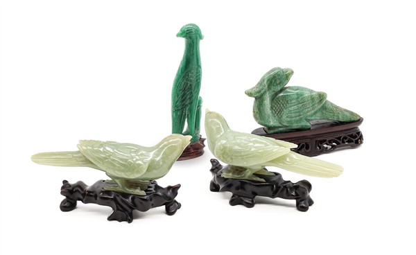 Lotto composto da quattro diverse sculture di volatili in pietre dure Cina, sec
