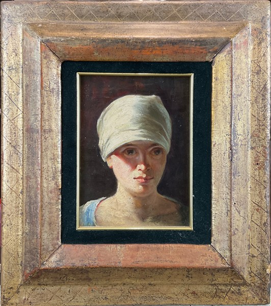 Nazzareno Sidoli "Ritratto di popolana con cuffia bianca" olio su cartone press