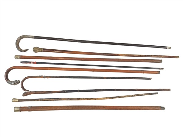 Lot 1014 | Lotto composto da diversi bastoni da passeggio in malacca, bambù con prese in a