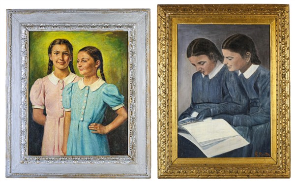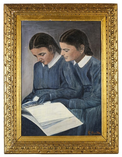 Lotto composto da un olio su compensato e uno su tela raffiguranti bambine, misure diverse (misura max cm 81x65) uno firmato Botta uno firmato Vannuccini in basso