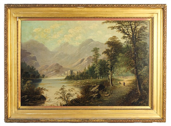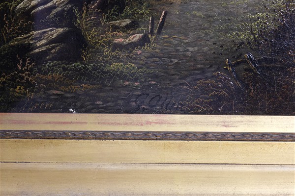 G. Allen "Scorcio fluviale con figure" olio su tela (cm 60x90) firmato in ba