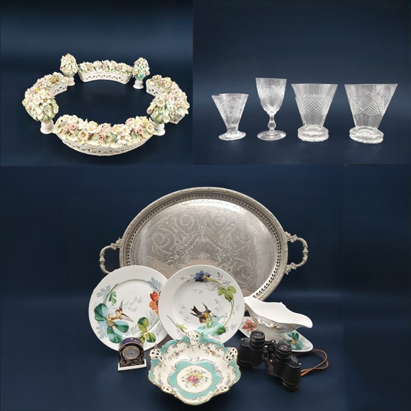 Lot 1044 | Due cartoni contenenti numerosi oggetti in porcellana, vetro, metallo argentato