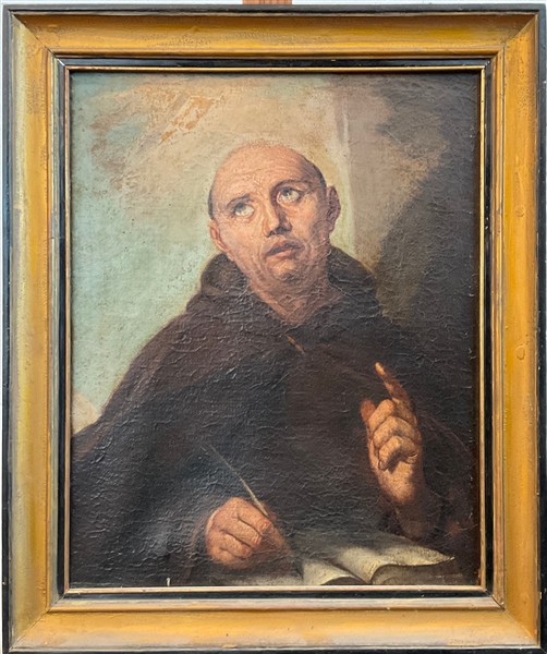 Scuola veneta del secolo XIX "Frate cappuccino ispirato dal cielo" olio su tel
