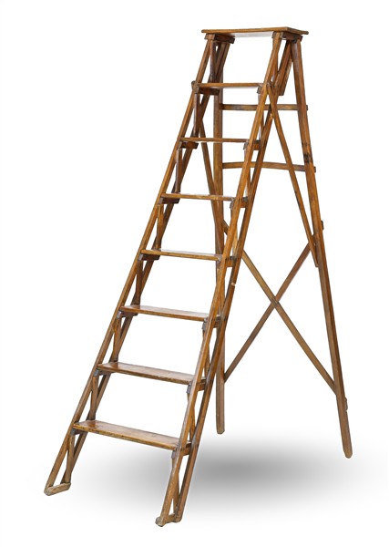 Scala da biblioteca in legno a otto gradini (h chiusa cm 186) (difetti)