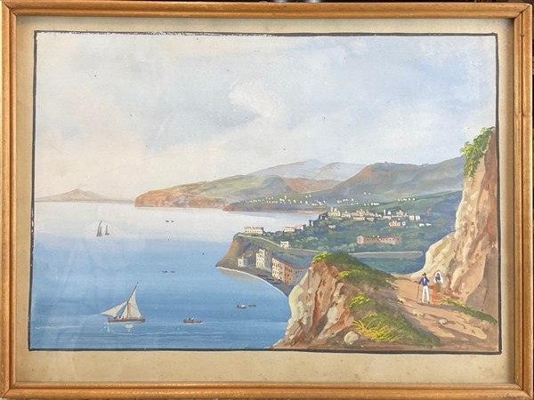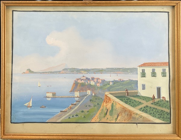 Lotto di tre gouache su carta raffiguranti vedute costiere napoletane di cui un