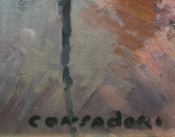Silvio Consadori "Burano - L'Accademia" 1971 olio su cartone telato (cm 35x45) f
