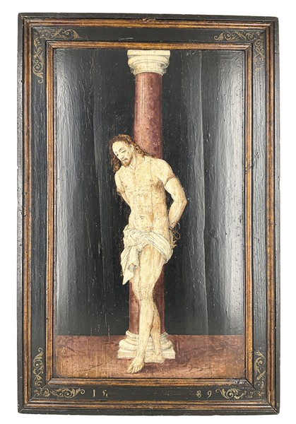Ignoto Antico dipinto raffigurante "Cristo alla colonna" olio su tavola (cm 60