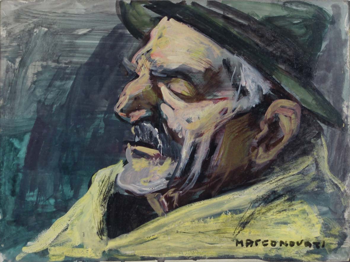 NOVATI MARCO Venezia 1895 - 1975 Bevitore olio su tavola 30x40 cm firma in basso a destra firma e titolo al retro autentica dell'Autore al retro provenienza Studio G.R. Sacile - etichetta al retro