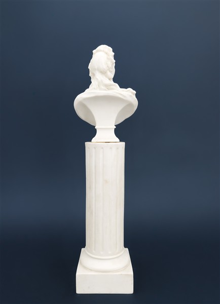 Manifattura di inizio secolo XX. Busto di Maria Antonietta (?) su colonna scanalata in biscuit (h cm 31) (difetti e restauro)