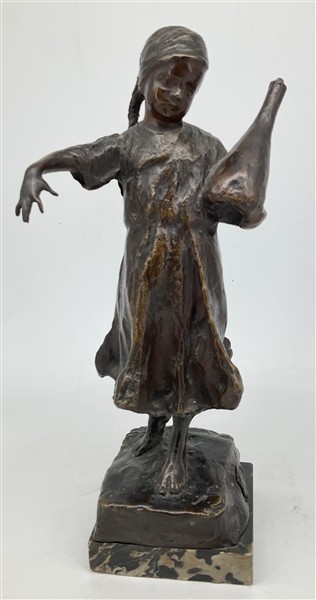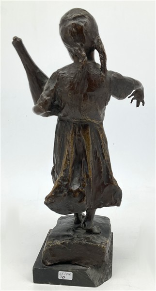 Francesco Parente "Bambina con giara" scultura in bronzo su base in marmo (h cm