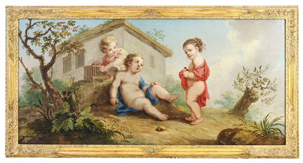 Lot 1151 | Scuola del secolo XVIII "Giochi di fanciulli" olio su tela (cm 70x145) in corn