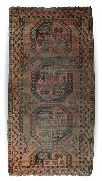 Tappeto Afghan, Turkestan occidentale, inizio secolo XX. Decoro con tre Gül a z