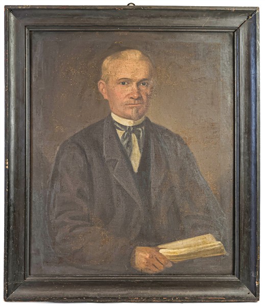 Ignoto del secolo XIX "Ritratto virile con libro" olio su tela (cm 72x60) in