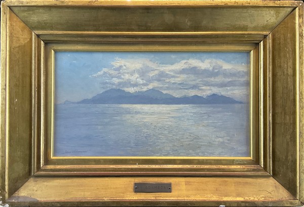 John Adamson "Un'insola incantata" olio su tela (cm 20x34) firmato in bassso a