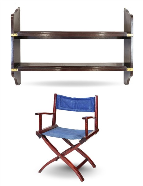 Lotto composto da una sedia pieghevole e una mensola Navy a due ripiani in legn