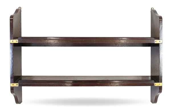 Lotto composto da una sedia pieghevole e una mensola Navy a due ripiani in legno tinto mogano (cm 101x70x22) (difetti)