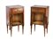 Due comodini lastronati e filettati in legni di varie essenze, fronte ad un'ant
