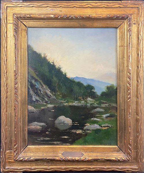 Lot 1208 | Ignoto di fine secolo XIX "Scorcio fluviale" 15 settembre 1889 olio su tavola