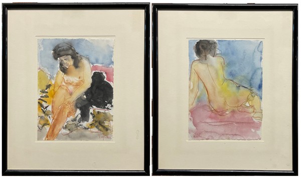 Franca Vigliani Coppia di "Nudi"tecnica mista su carta (cm 25,5x18,5) firmati in