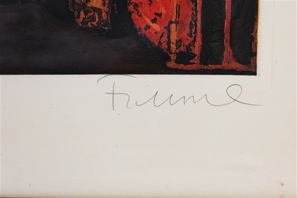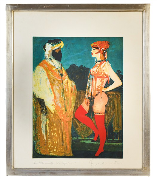 Salvatore Fiume. Due stampe a colori raffiguranti odalische (fogli cm 60x79 e cm 72x60), firmate in basso a destra e dedicate, in cornici (lievi difetti)