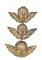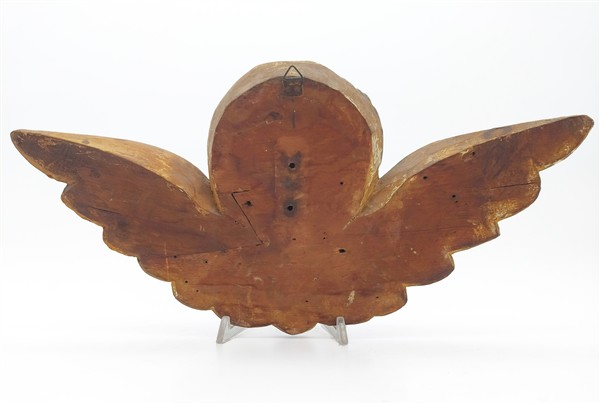 Gruppo di tre teste d'angelo in legno intagliato e dorato a mecca. Secolo XIX (cm max 41x20) (difetti)