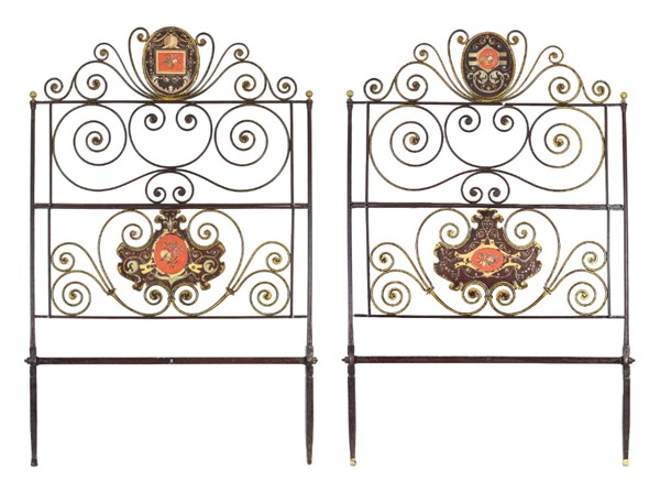 Lot 1261 | Doppia testiera da letto in ferro battuto e dipinto in policromia a fondo borde