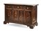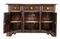 Antica credenza in noce a tre cassetti e quattro ante con rilievi mistilinei, p