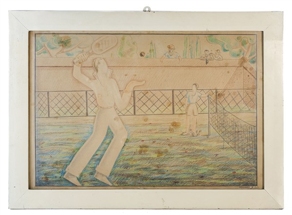Lot 1287 | Gregnanis F. due tecniche miste su carta raffiguranti due giocatori di tennis e