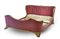 Letto matrimoniale in legno intagliato e dorato con angoli arrotondati, piedi sagomati e bordure scanalate, rivestimento in tessuto rosa (cm 176x96x215) (difetti)