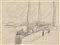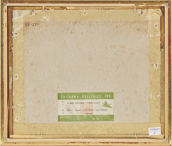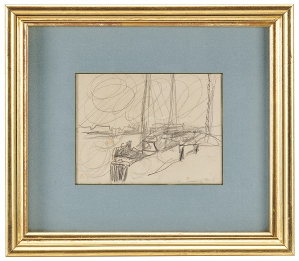 Pierre Bonnard "Canale con tre barche" carboncino su carta (cm 11,5x15,5) monog