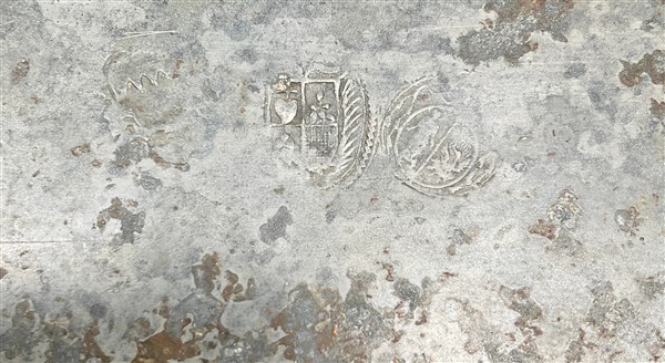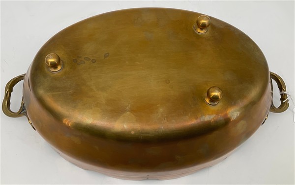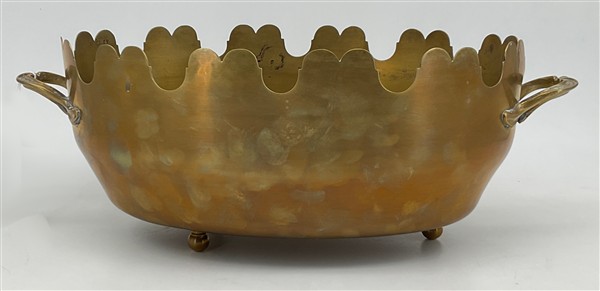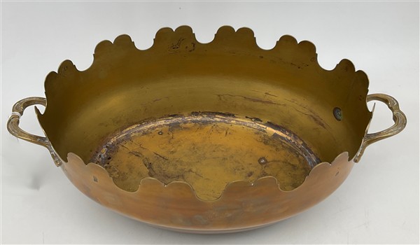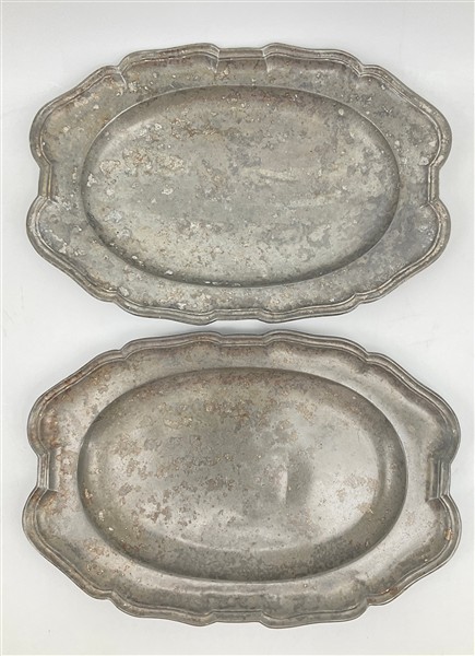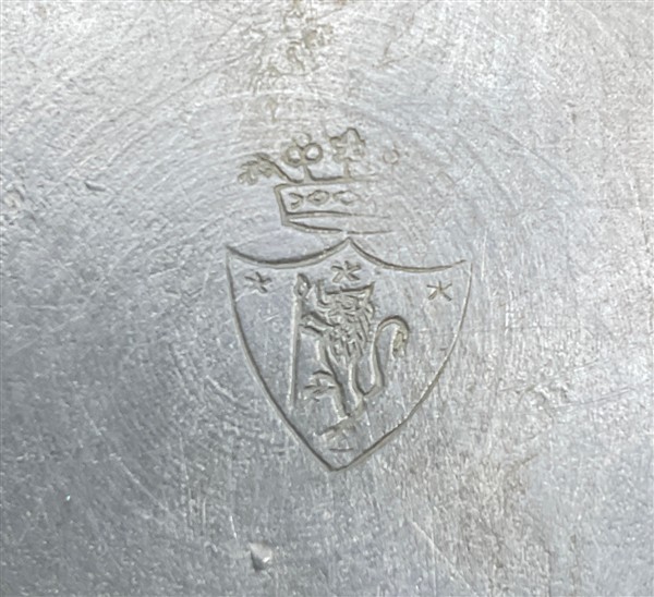 Lotto composto da sette boccali in fusione di peltro con decori a rilievo a scene di caccia, due vassoi in peltro polilobato e un rinfrescatoio ovale in ottone (difetti)