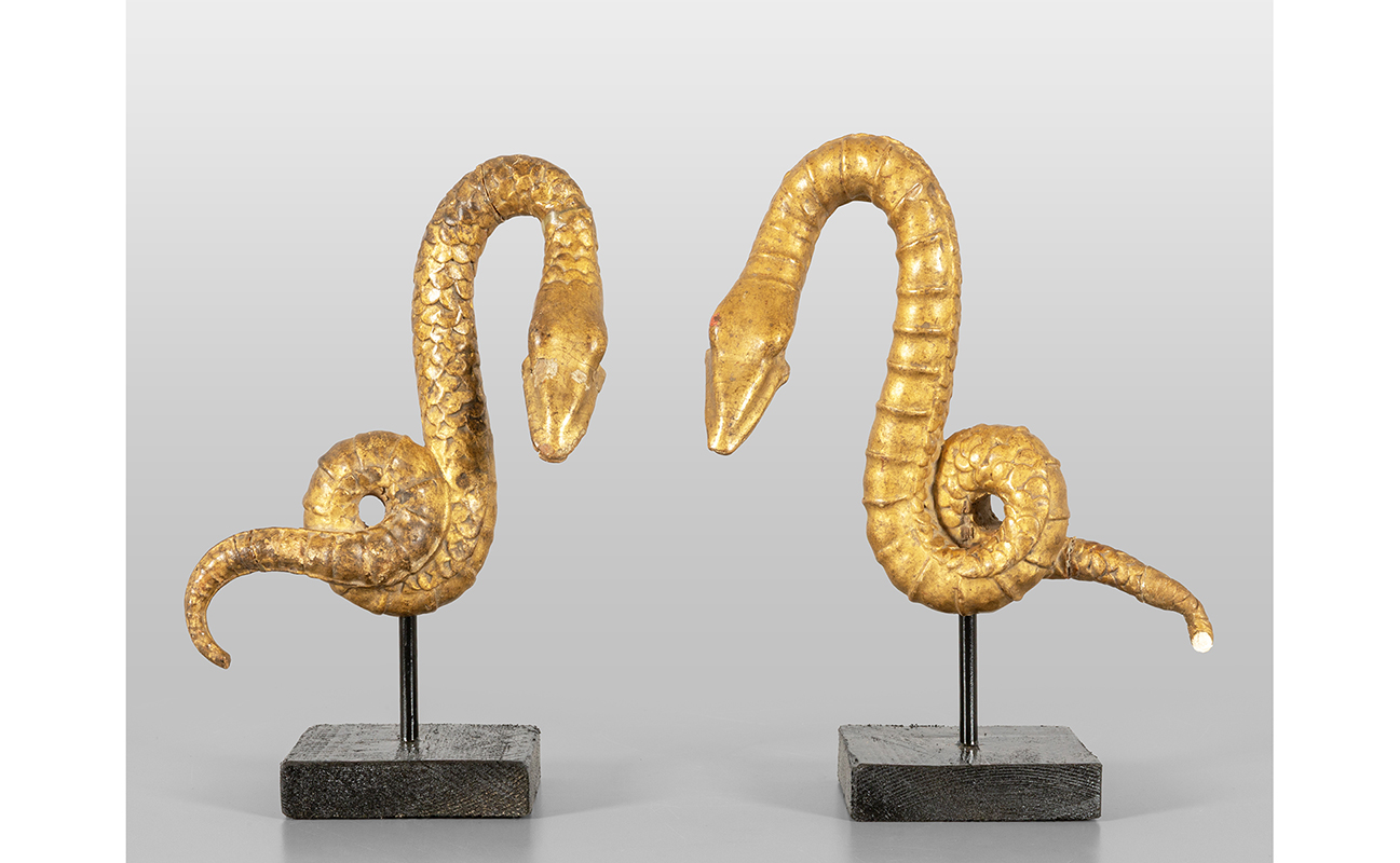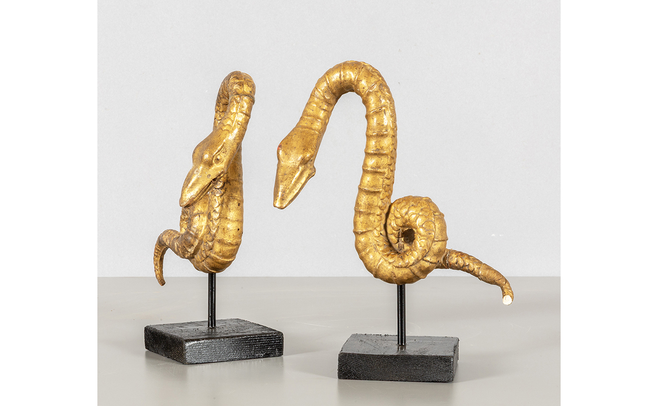Serpenti coppia di sculture in lengo intagliato e dorato inizi sec.XIX