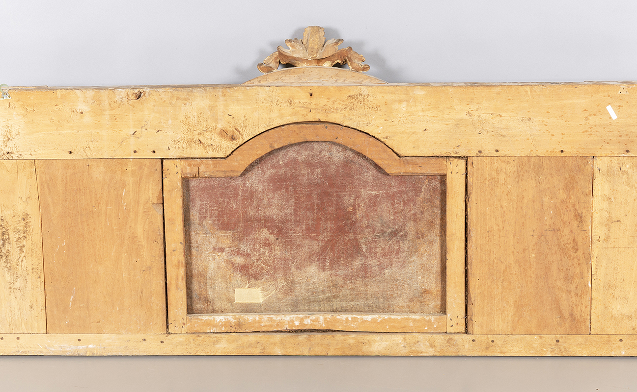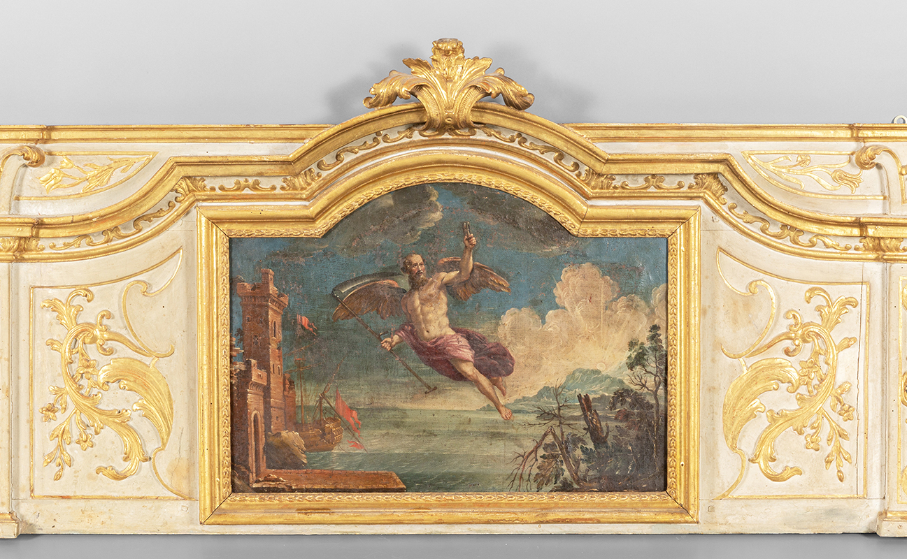 Caminiera in legno intagliato e laccato con all'interno dipinto raffigurante il Tempo Piemonte sec.XVIII