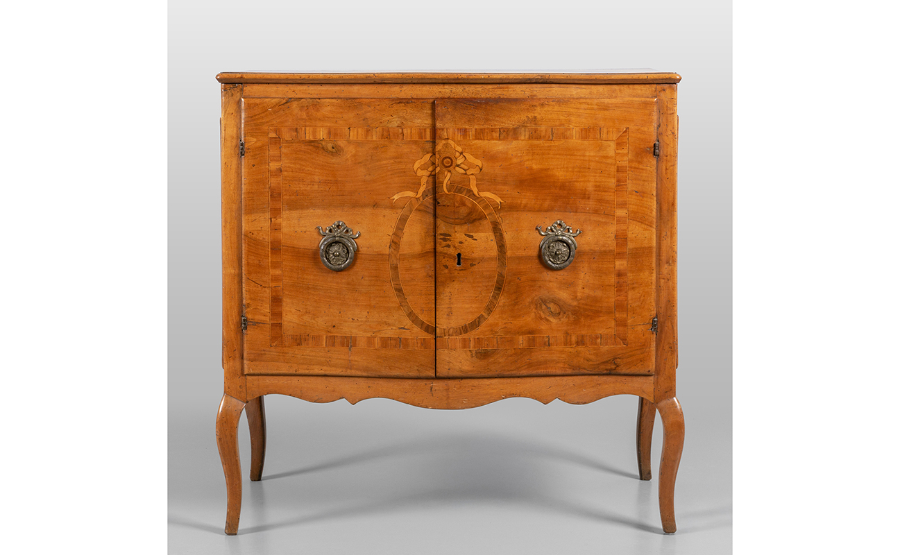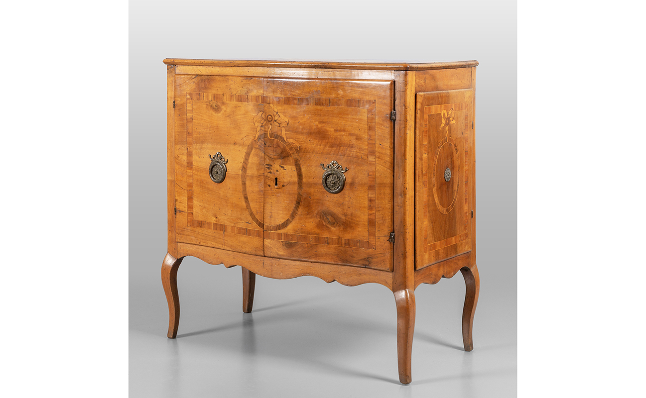 Credenzino Luigi XIV lastronato due sportelli più due laterali Parma sec.XVIII