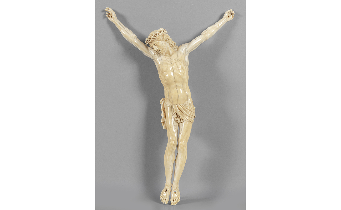 Cristo Crocefisso grande scultura in avorio scolpito Francia sec.XVIII