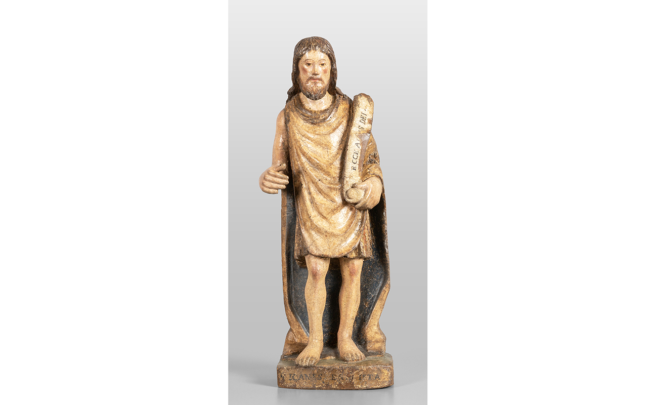 San Giovanni scultura in legno intagliato dorato e laccato Piemonte sec.XVI