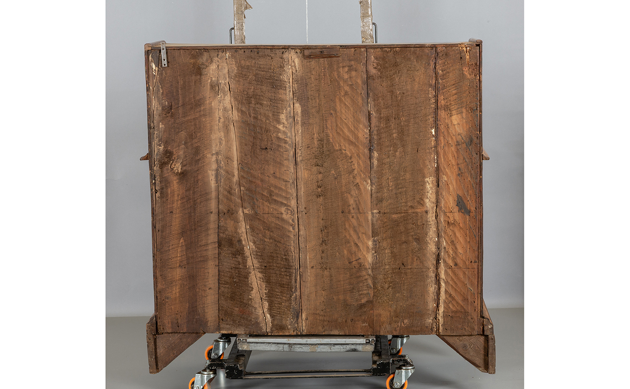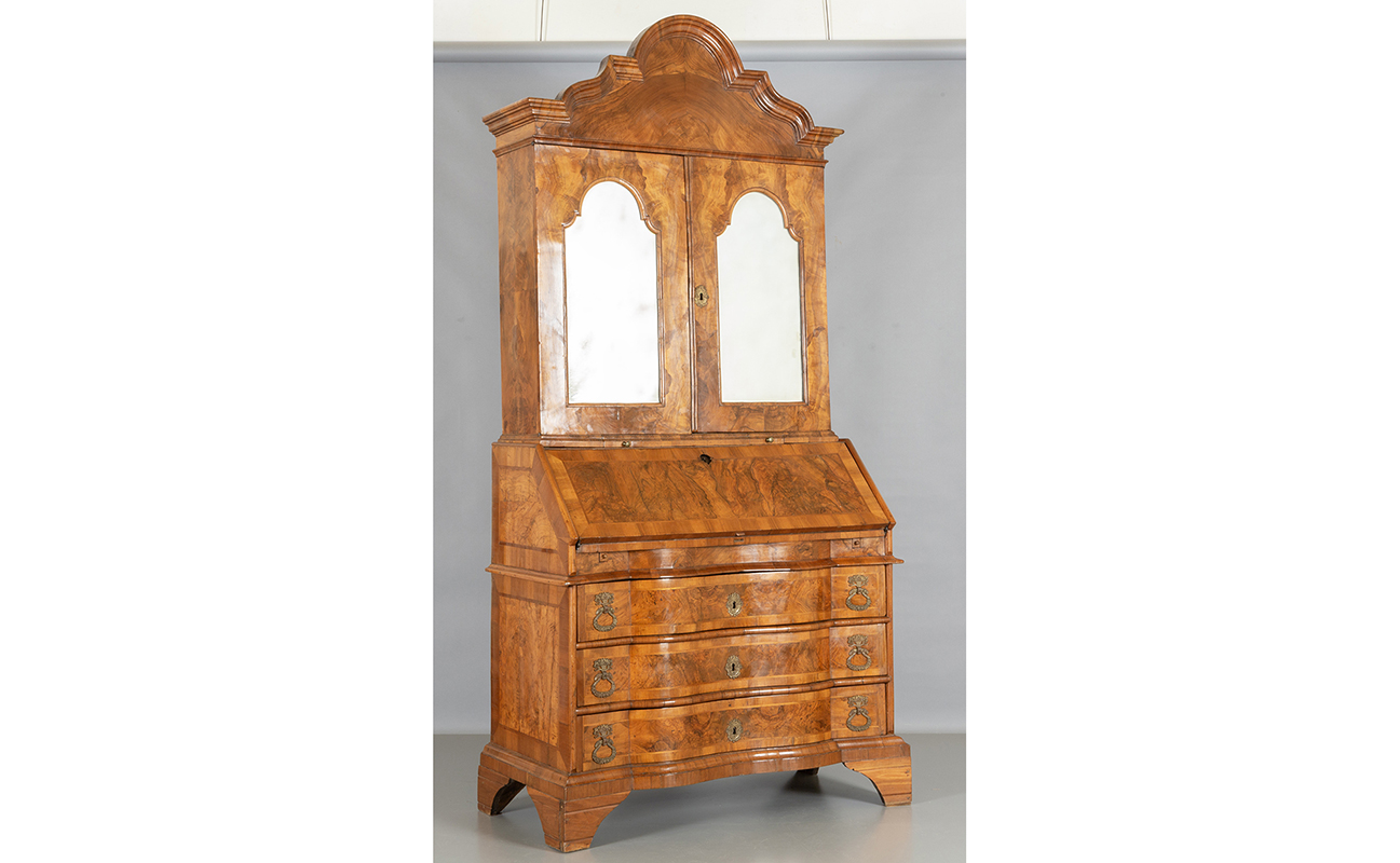 Doppiocorpo lastronato parte inferiore e tre cassetti parte superiore a due sportelli con specchi Emilia sec.XVIII
