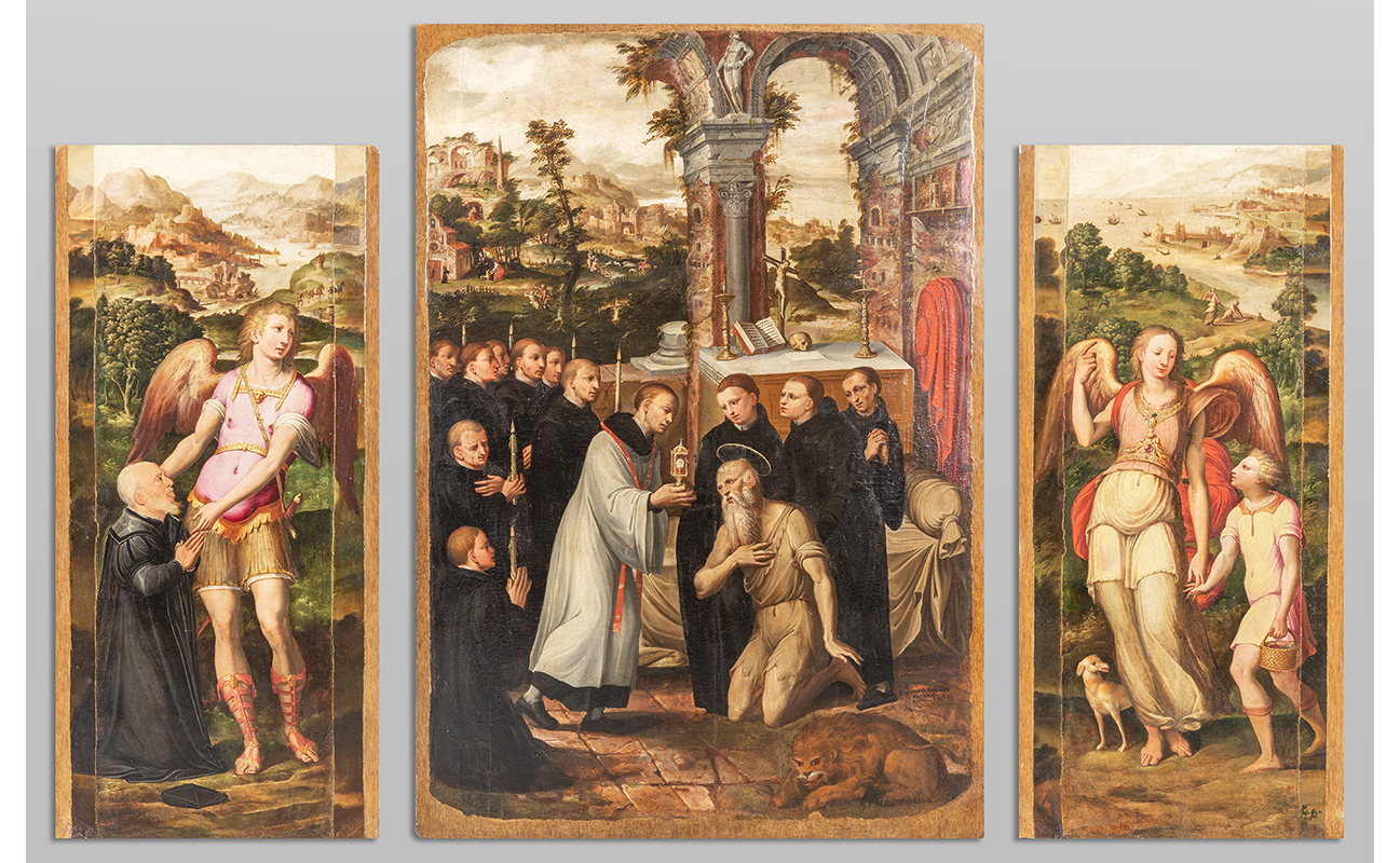 trittico olio su tavola tavola centrale cm 135 5x94 e laterali cm 117 5x54 8
