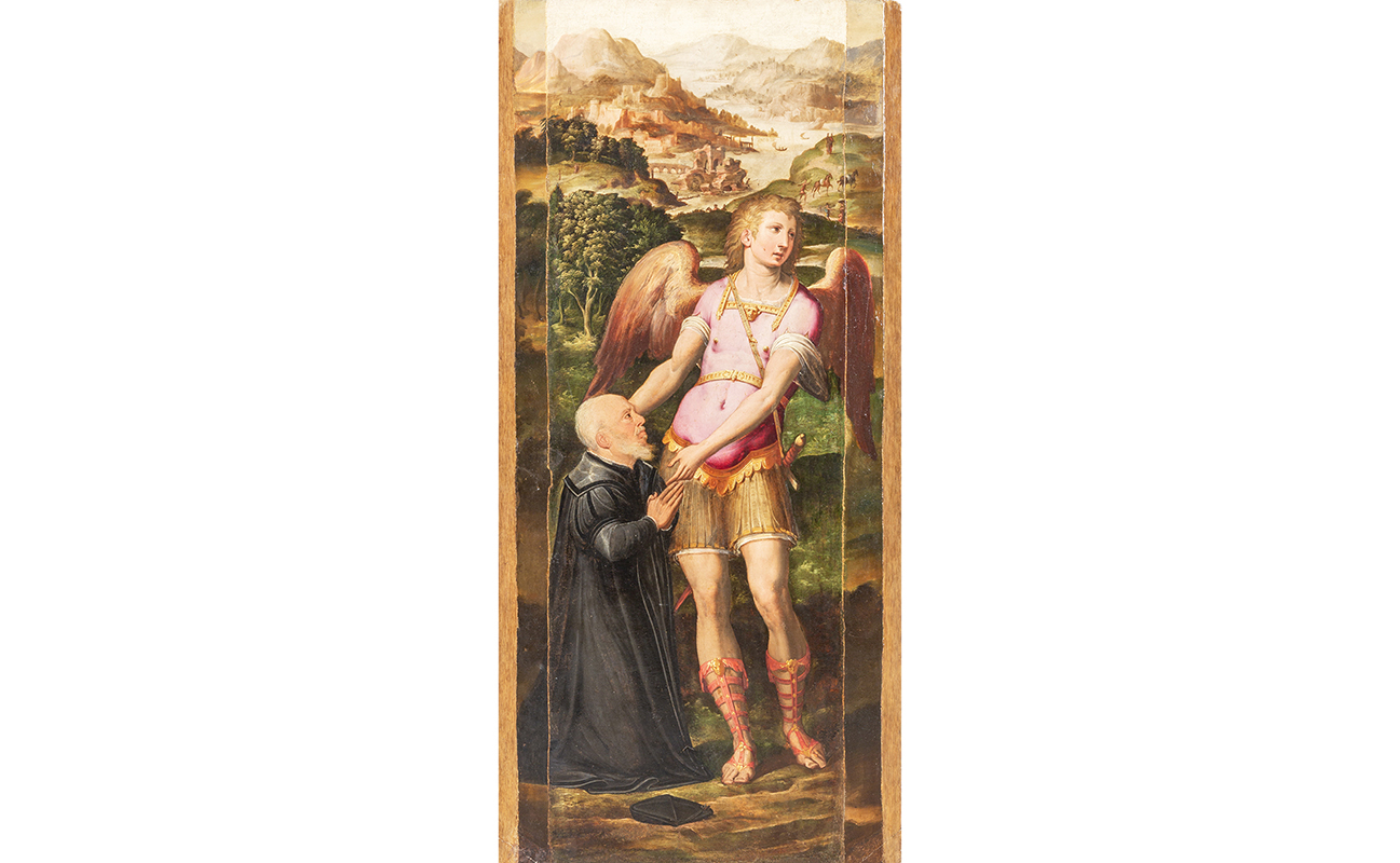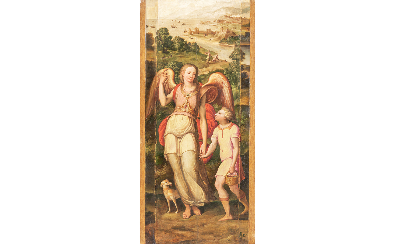 Il Committente e l'Arcangelo Michele (a sinistra); Tobiolo e l'Angelo (a destra)