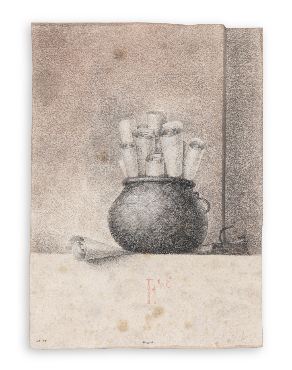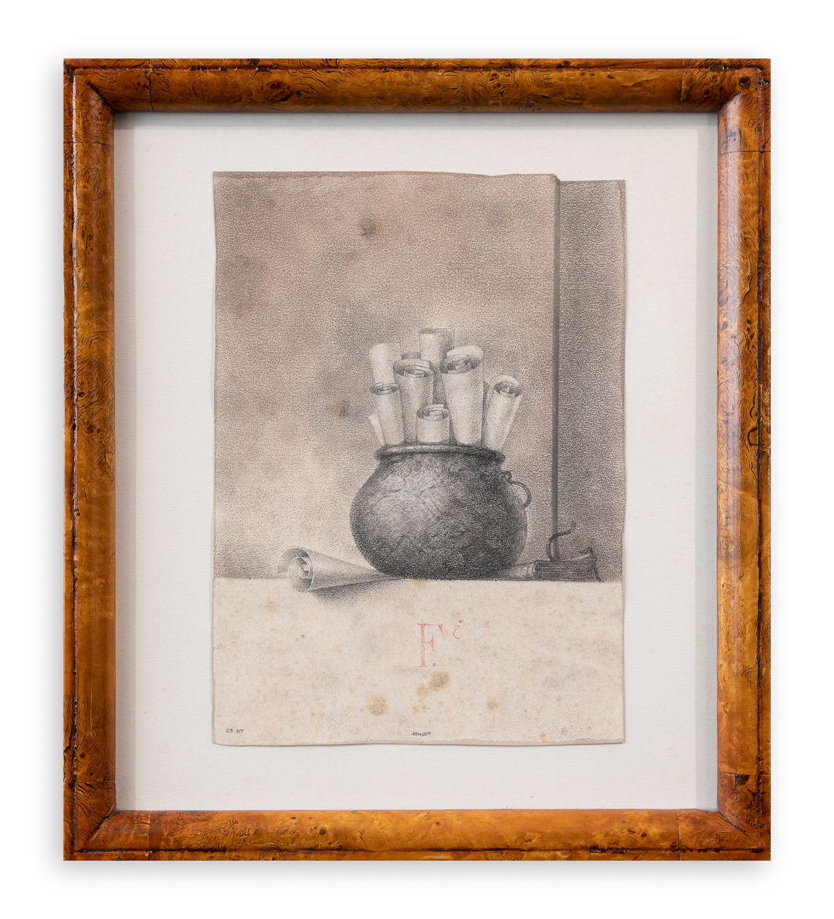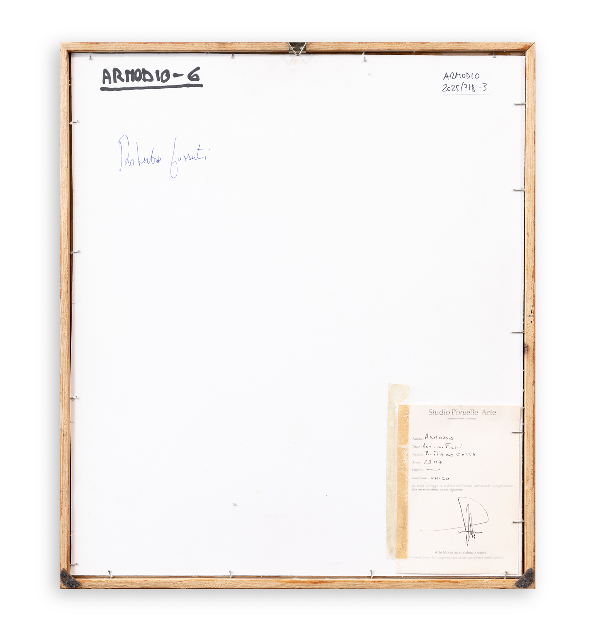 Etichetta dello Studio Pivuelle Arte (AR) al retro del cartoncino protettivo