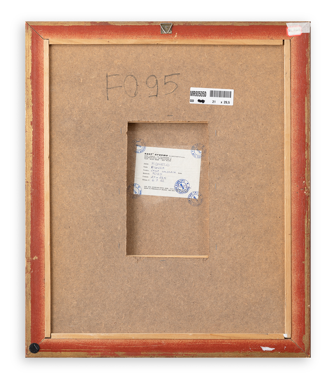Timbro ed etichetta della Galleria Sant'Erasmo (MI) al retro