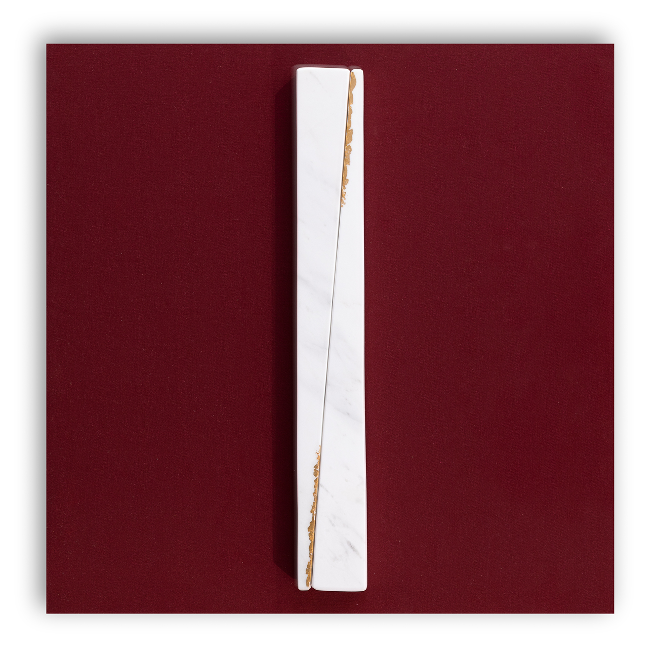 Marmo bianco e foglia oro su tessuto monocromo rosso applicato su tela