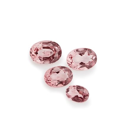 Lotto di quattro tormaline rosa in cartina per totale ct 12,56 da mm 12,00x9,00 a mm 9,00x6,00