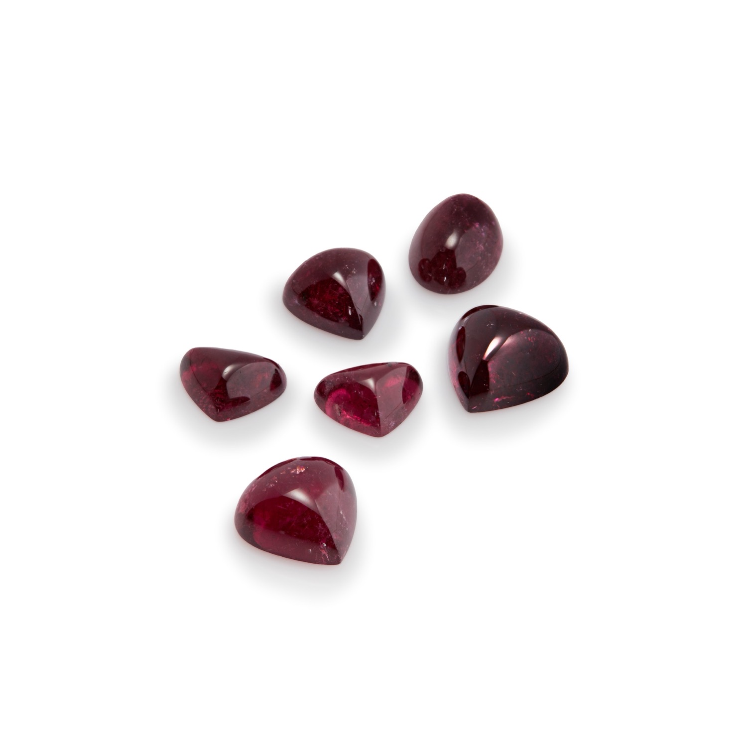 Lotto di sei tormaline rosa in cartina per totale ct 50,66 da mm 14,00x15,00 a mm 15,00x11,00 circa