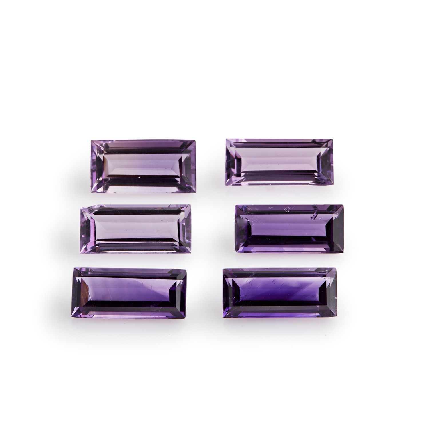 di forma rettangolare, taglio a gradini, difetti (una ametista sbeccata in uno spigolo).