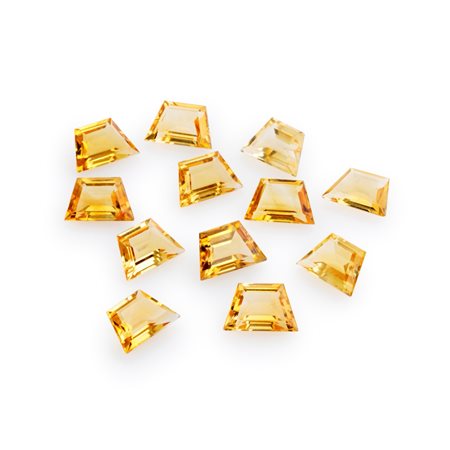 Previous Lot 110 Next Finarte - Via dei Bossi 2, 20121 Milano Gemme / Tutti i colori della natura Sessione unica Tuesday 23 September 2025 hours 11:00 (UTC +01:00) Lotto di quarzi citrini in cartina per totale ct 23,63 mm 11,00x7,00 di forma a trapezio, taglio a gradini.
