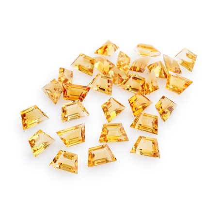 Previous Lot 111 Next Finarte - Via dei Bossi 2, 20121 Milano Gemme / Tutti i colori della natura Sessione unica Tuesday 23 September 2025 hours 11:00 (UTC +01:00) Lotto di quarzi citrini in cartina per totale ct 42,45 mm 10,00x6,00 di forma a trapezio, taglio a gradini.
