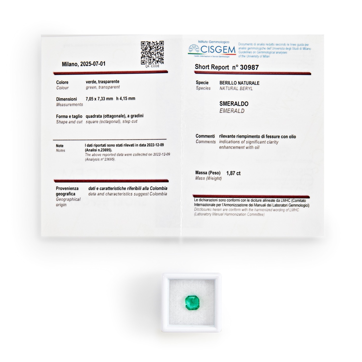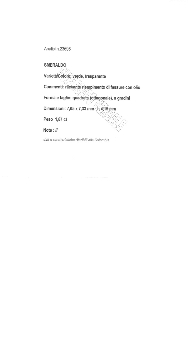 Smeraldo Colombia in cartina ct 1,87 mm 7,05x7,33 h mm 4,15