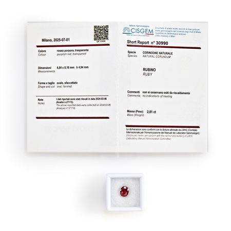 Rubino in cartina ct 2,81 mm 6,84 x 8,18 h mm 4,94