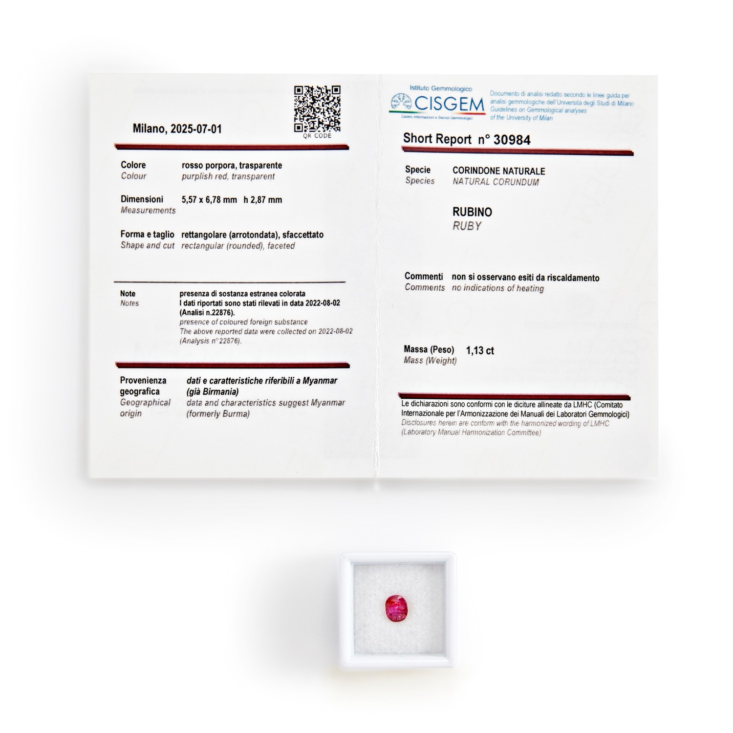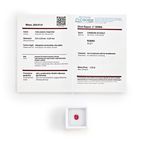 Rubino Burma in cartina ct 1,13 mm 5,57 x 6,78 h mm 2,87